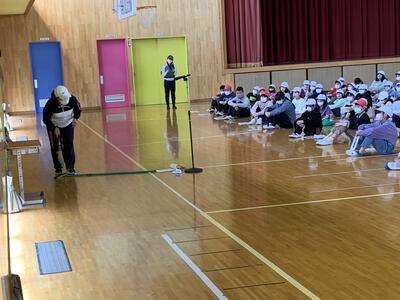 体育館に集まり、清掃担当から清掃の仕方、用具の使い方、役割分担の仕方等について指導しました。