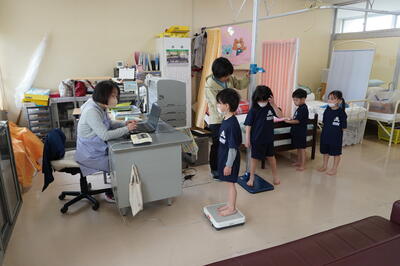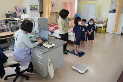 それぞれの学期の始めに身長、体重を測定します。2学期の発育測定までどれくらい成長するか楽しみですね。