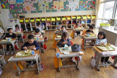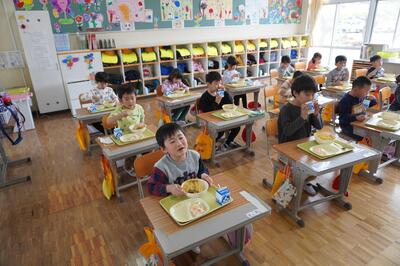 1年生の子どもたちは、今日の給食を楽しみにしていたようでした。