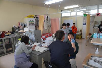 4月13日(木)、学校歯科医の佐久間先生に来校していただき、2校時目から全校生が歯科検診を行いました。