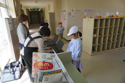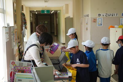 今年度、初めての来校でしたが、たくさんの子どもたちが本の貸し出しを行っていました。