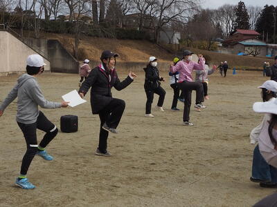 今日は、千葉先生も来ていたので、つかまった子どもたちと一緒に「三神エアロビクス」を行ってくれました。