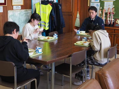 2年生の子どもたちは、最初は緊張していたようでしたが、徐々に食堂の雰囲気にも慣れ、おいしそうに給食を食べていました。