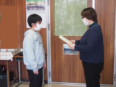 2月27日(月)の朝の時間にMTVで賞状の伝達を行いました。