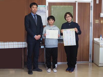 2月28日(火)に公益財団法人白河法人会の代表の方が来校し、「税に関する絵はがきコンクール」の表彰を行いました。