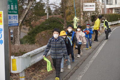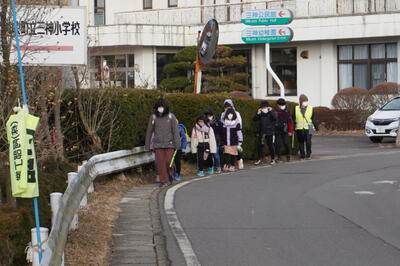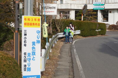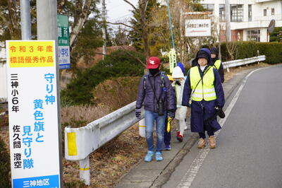 見守り隊の方々や地域の方々にあいさつができるすばらしい三神小の子どもたち。これからも、みんなで明るい地域づくりに貢献していきましょう。