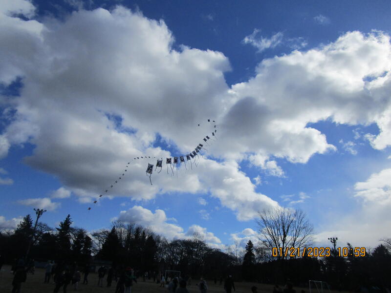 連凧あげは、初めての企画なのでうまくあがるかどうか心配でしたが、保護者の皆様の協力のおかげで、空高く上げることができました。