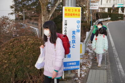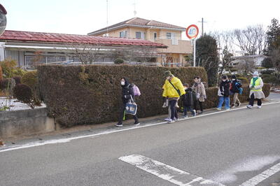 寒くても歩いて登校する子どもたち。そして、見守り隊の皆様、いつも、ありがとうございます。