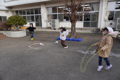 上校庭でなわとびをする子どもたちもいます。