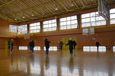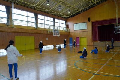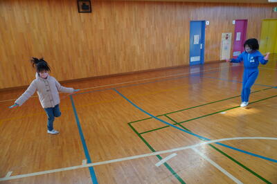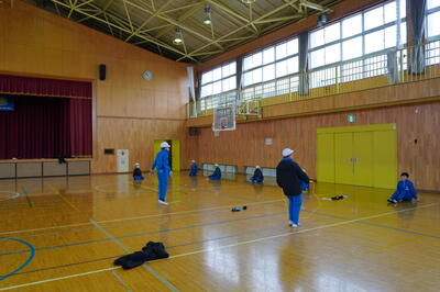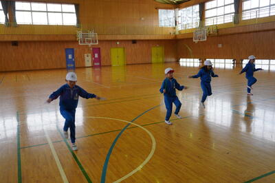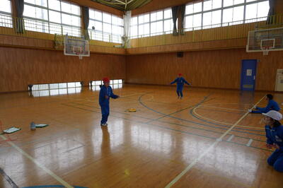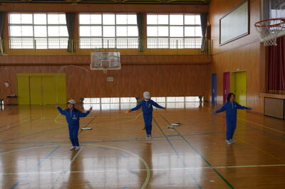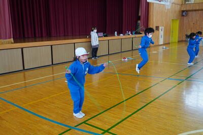 そして、毎朝、上校庭でなわとびをしている子どもたちは、今日は、体育館で行っていました。