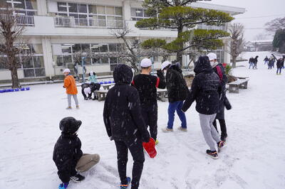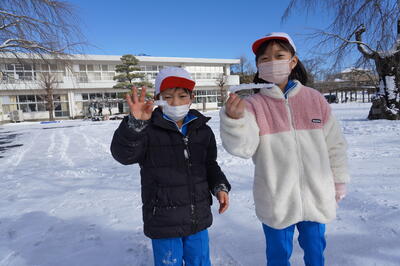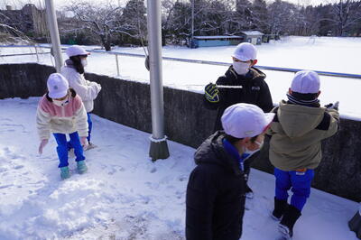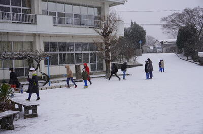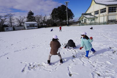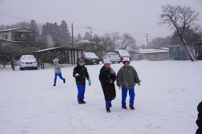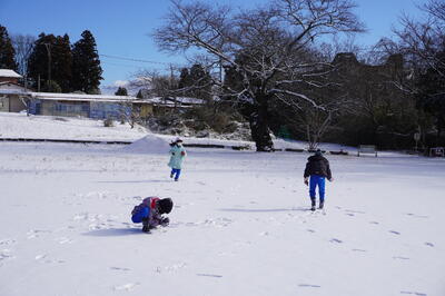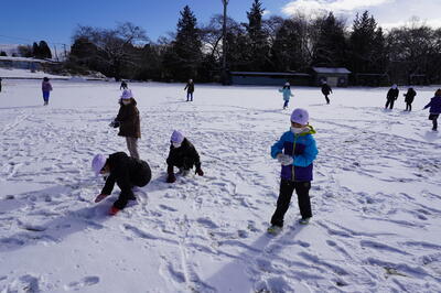 1月26日(木)の2校時目に、1・2年生が生活科で雪遊びをしていました。
