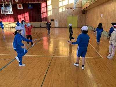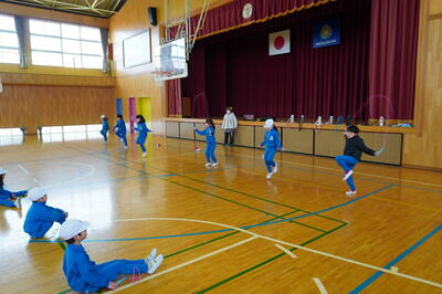 1月25日(水)の3校時目に、3年生が体育で「なわとび」を行っていました。