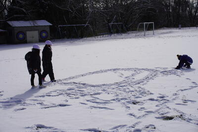 雪合戦や雪に足跡をつけて模様を描いたりして遊んでいました。
