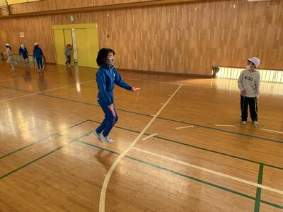 1月25日(水)の4校時目に、1年生が体育で「なわとび」を行っていました。