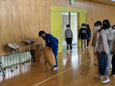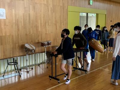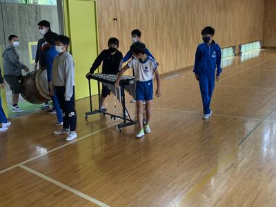 10月11日(火)の朝の時間に、5・6年生が学習発表会に使う楽器を体育館に運んでくれました。
