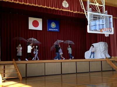 昨年度は、5・6年生に公民館より山台を運んでもらいましたが、今年度の学習発表会は、山台を使わずに、ステージの上と下で演技や演奏を行います。