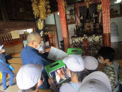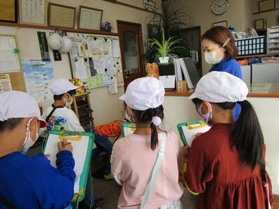 今回は、2回目の町探検ということで、1回目の町探検を終えて、さらに詳しくインタビューしたい場所を選んで訪問しました。また、今回も3名の保護者の方の協力を得て、安全に探検することができました。ご協力、ありがとうございました。