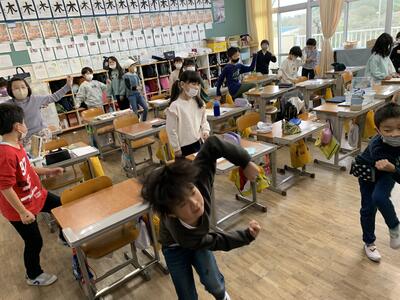 しかし、子どもたちは、リズムに合わせて楽しみながら行っていました。