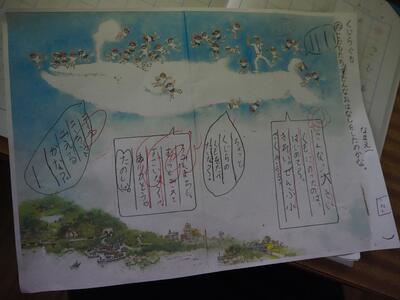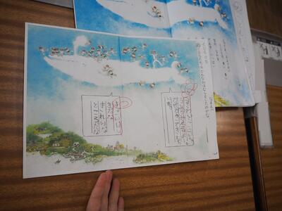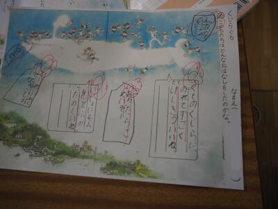 「くじらぐも」に乗った子どもたちの気持ちを吹き出しに書き、それを発表していました。