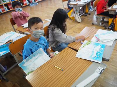 10月13日(木)の2校時目に、1年生が国語の授業で「くじらぐも」の学習をしていました。