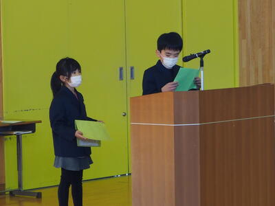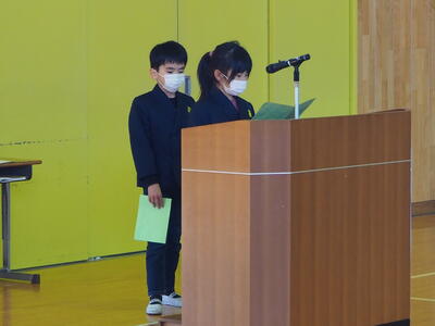 その後、「2学期がんばったこと」の発表を1年生と3年生が行いました。