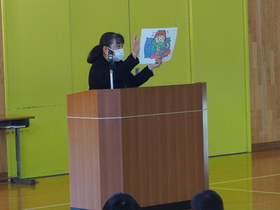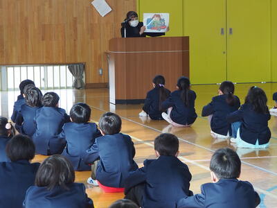 1・2年生にとっては、少し難しい内容かと思いましたが、今村さんが分かりやすく資料をつくってくださったおかげで、子どもたちは、最後まで集中して話を聞いていました。