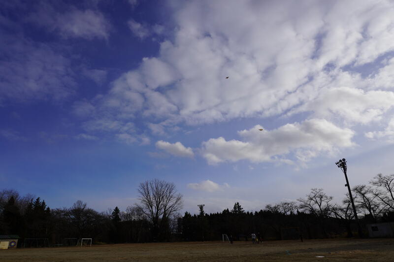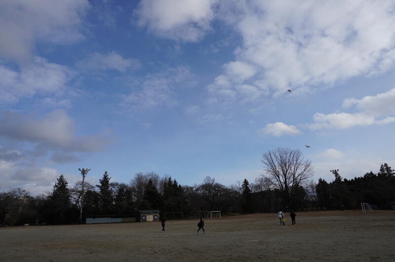 1月4日(水)、校庭の上空に凧があがっているのを見つけたので、 「三神小の子どもたちが来ているのかな?」と思い、校庭に行ってみました。