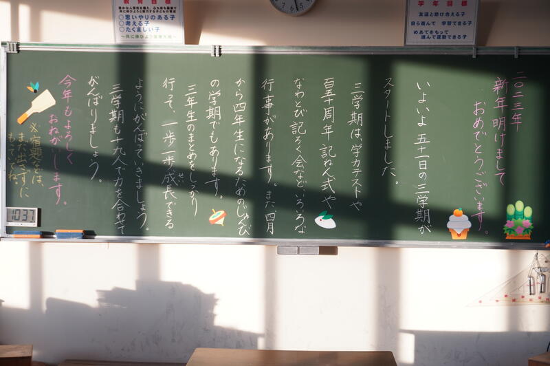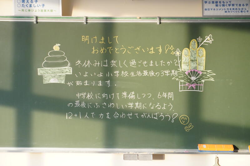 新しい年を迎え、子どもたちは「今年は、〇〇をがんばるぞ!」という目標を持って登校したのではないかと思います。そして、教室に入って、担任の先生からのメッセージを読んで、さらに、その気持ちを高めたことでしょう。