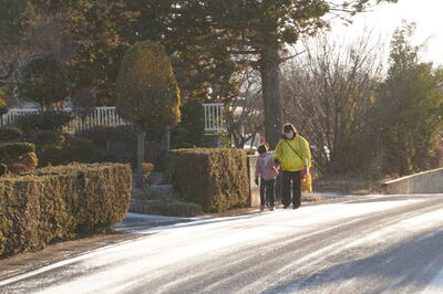 冬季間の登下校は、道路の凍結等でけがや事故が心配されます。十分気をつけて登校させたいと思います。