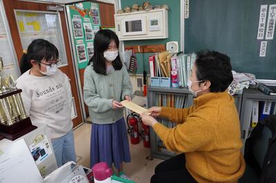 12月21日(水)に、6年生が卒業文集の原稿依頼に先生方のところに訪れていました。