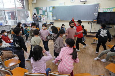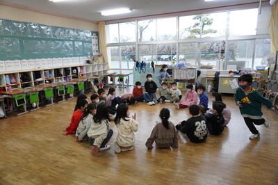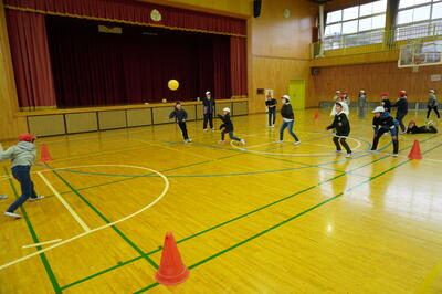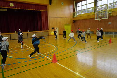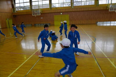 12月20日(火)の2校時目に5年生、3校時目に2年生、4校時目に4年生が体育の授業を千葉先生と一緒に行いました。