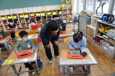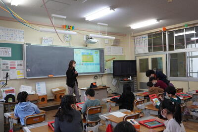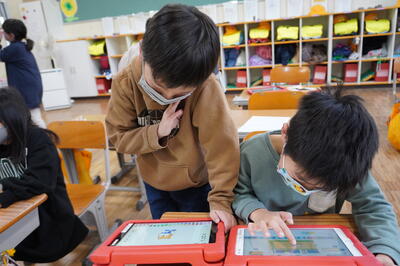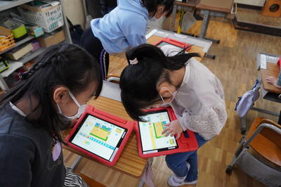 1年生は、「スクラッチジュニア」というアプリを使ってプログラミングを学習しました。