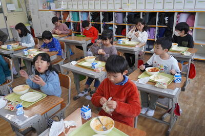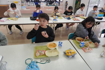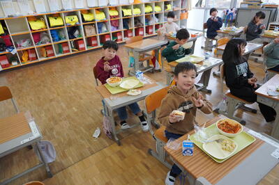 子どもたちは、2学期最後の給食を楽しみにしていたようです。メニューを見ると子どもたちが大好きなものばかり。おまけにクリスマスケーキは、イチゴとチョコのセレクトメニューでした。