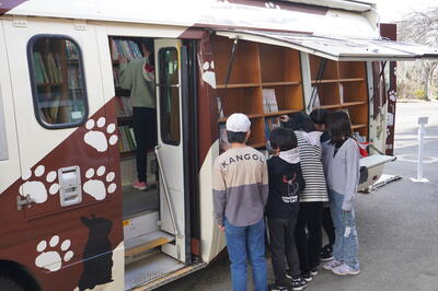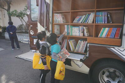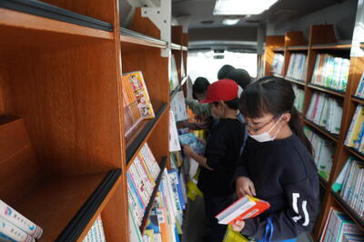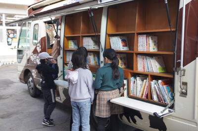 12月8日(木)の昼休みに、2学期最後の移動図書館「よむよむ号」がやってきました。
