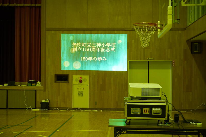 三英堂事務機さんの協力により、10,000ルーメンのプロジェクターをお借りし、記念式を盛り上げるための企画を進めているところですが、そのデモンストレーションを実行委員会の皆様に見ていただきました。