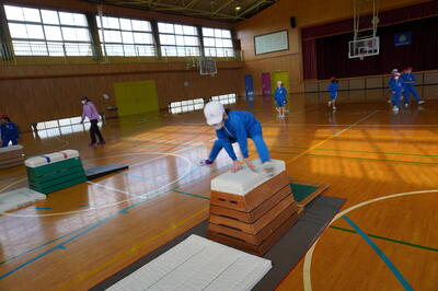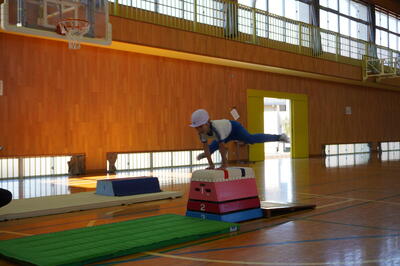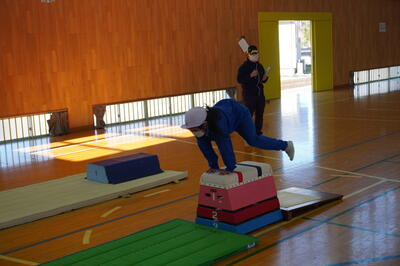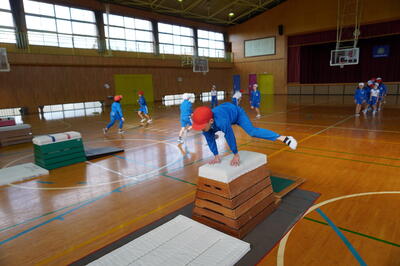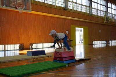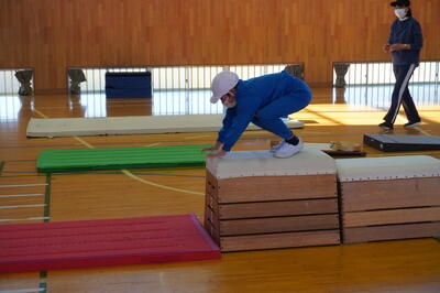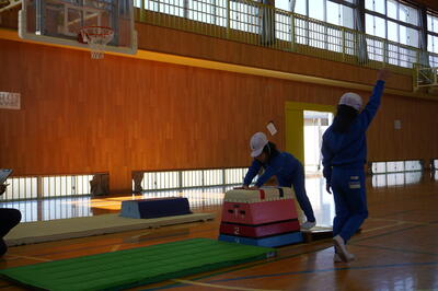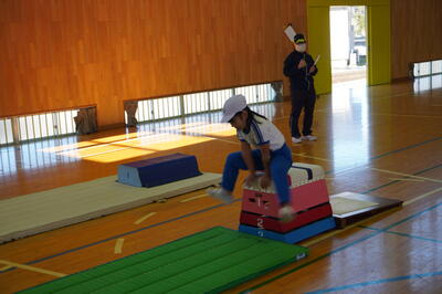 12月9日(金)の3校時目に、1年生が体育の授業で跳び箱遊びを行っていました。
