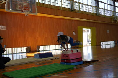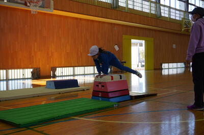 12月9日(金)の4校時目に、2年生が体育の授業で跳び箱遊びを行っていました。