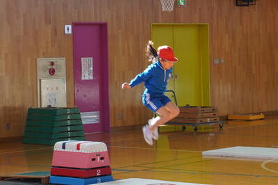 1年生は、今日が初めての跳び箱遊びでしたが、繰り返したくさん跳ぶことによって怖さを少しずつ乗り越え、楽しそうに跳べる子が増えてきました。