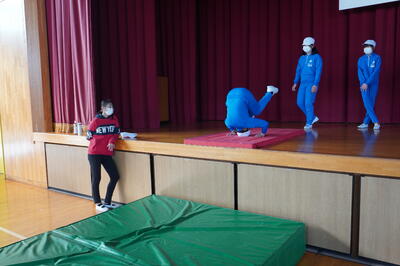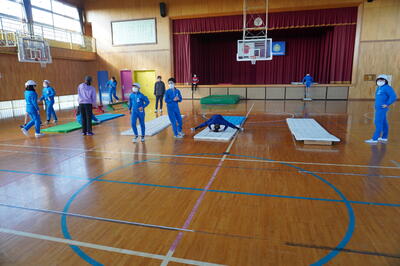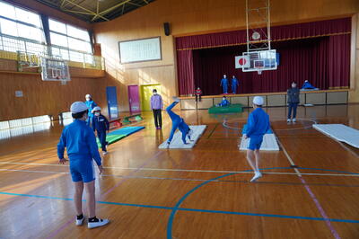 12月9日(金)の5校時目に、5年生が体育の授業でマット運動を行っていました。