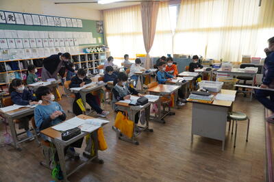 子どもたちの貸し出しの様子を撮影していると、5年生の子どもたちが、収穫したお米を先生方にプレゼントしてくれました。
