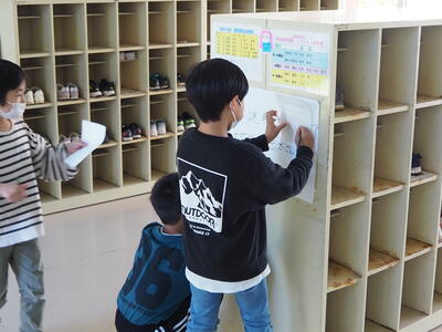 子どもたちは、休み時間を利用して、問題と見つけ、解いて回っています。