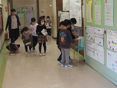 11月21日(月)の2時間目の休み時間に、運営委員会が企画した「クイズラリー」を1・2年生の多くの子が行っていました。