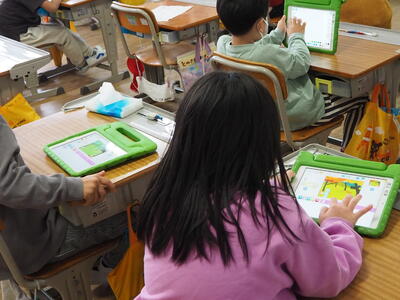 大杉教育長様、吉田指導主事様より、「前回訪問した6月より子どもたちの学びに向かう姿が積極的になっていて、どの子も集中して学習している。」「ICTの活用もそれぞれの授業、それぞれの学年で工夫されている。」とお褒めの言葉をいただきました。