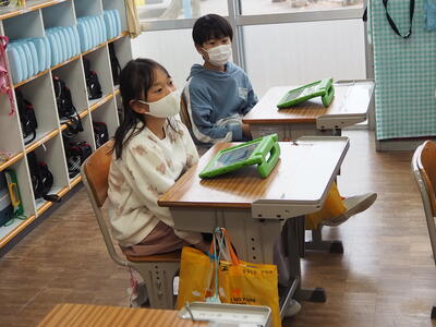 大杉教育長様、吉田指導主事様、2名が来校し、子どもたちの様子や学校の様子を見ていただきました。