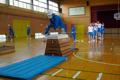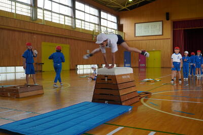 12月2日(金)の2校時目に、3年生が体育館で跳び箱運動を行っていました。