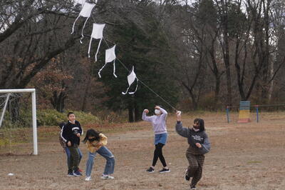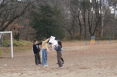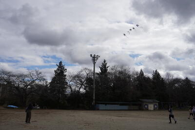 12月2日(金)の3・4校時目に、6年生が図工で連凧を作り、それを実際にあげていました。
