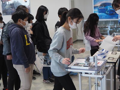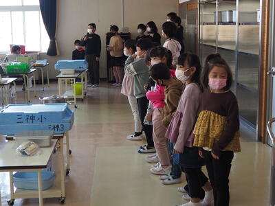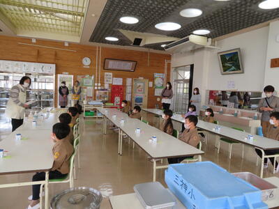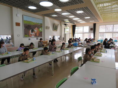 その後、食堂で給食を食べてもらいました。