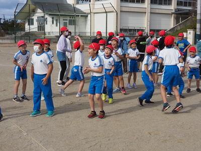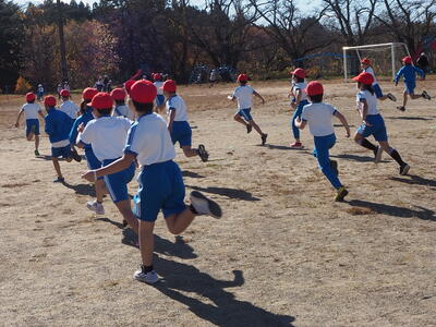 3・4年生は、紅帽子をかぶって、元気よく走り出していきました。