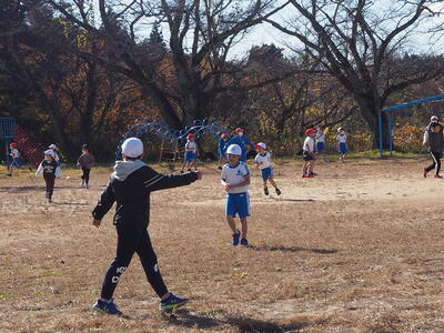 11月17日(木)の業間の時間に、「全校けいどろ」を行いました。今回は、2・6年生が「警察」ということでスタートしました。