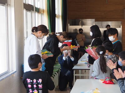 各学年からメッセージや花束を渡しました。